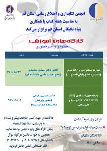 انجمن کتابداری و اطلاع رسانی استان قم به مناسبت هفته کتاب با همکاری بنیاد نخبگان استان قم برگزار می کند: