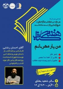 به گزارش روابط عمومی انجمن کتابداری Ùˆ اطلاع رسانی استان قم، همایش Ù‡ÙØªÙ‡ کتاب با عنوان من یار مهربانم توسط انجمن دانشجویی علم اطلاعات Ùˆ دانش شناسی دانشگاه قم با همکاری انجمن کتابداری Ùˆ اطلاع رسانی استان قم ۲۰ آبان ماه در سالن شهید بهشتی دانشگاه قم برگزار Ù…ÛŒ گردد.