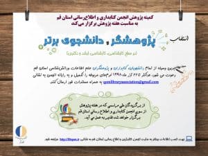 از برگزیدگان Ø·ÛŒ مراسمی Ú©Ù‡ در Ù‡ÙØªÙ‡ پژوهش از سوی انجمن کتابداری Ùˆ Ø§Ø·Ù„Ø§Ø¹â€ŒÂØ±Ø³Ø§Ù†ÛŒ استان قم در دانشگاه قم برگزار می‌شود، تقدیر خواهد شد.